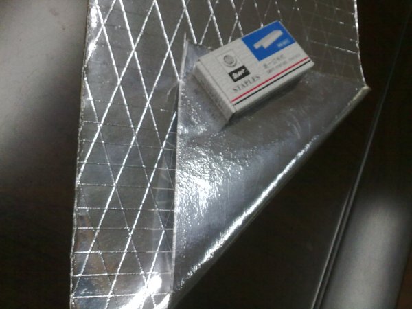 | 結(jié)構(gòu):鋁箔7微米/膠粘劑/玻璃纖維紗網(wǎng)格/牛皮紙/PE/7微米鋁箔 |